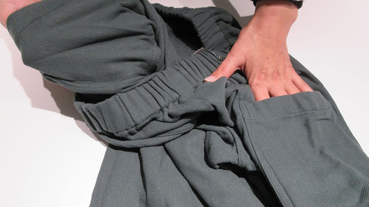 こうしたヒアリングを受けてメンバーがミーティングを重ね、仕様を検討していきました。例えば、ズボンの腰回りのひも。ゴムだけではズレ落ちてしまうことを防ぐためにありますが、「これだと前後があるよね」「ひもをなくしてゴムだけでも落ちないようにならないか」という意見が出てひもをなくしました。ポケットは、前後対象とするため、真横に付けることにしました。