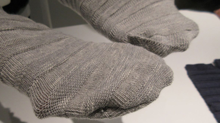 苦労したのはソックスです。つま先の縫い目を無くし裏表が同じ柄になるようにするためには編み機から変えないといけなかったからです。